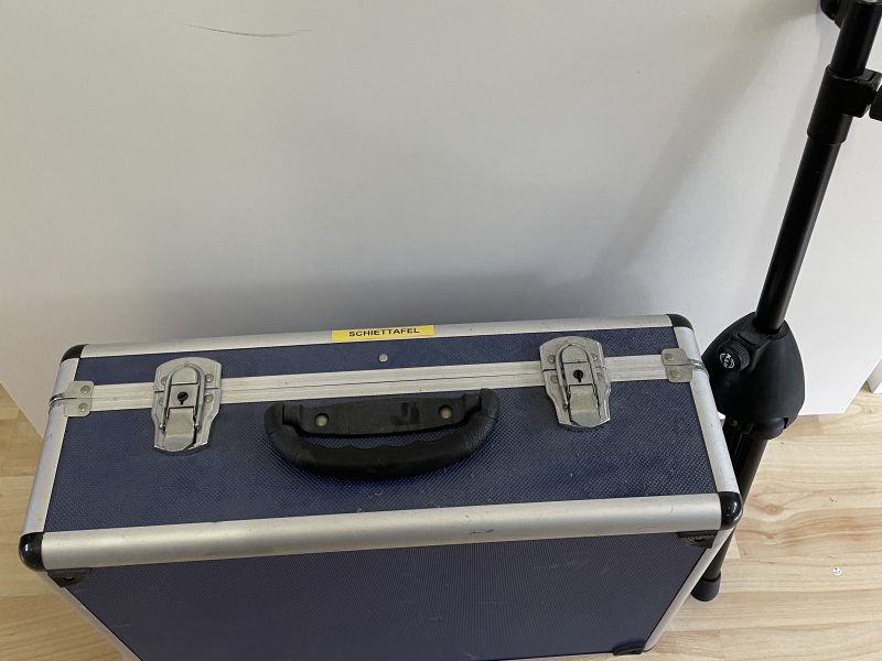 - 1 rode opslagbox met twee kleppen en opvouwbaar stevig statief (hoogte instelbaar)